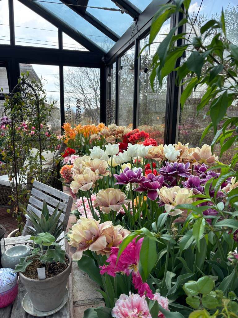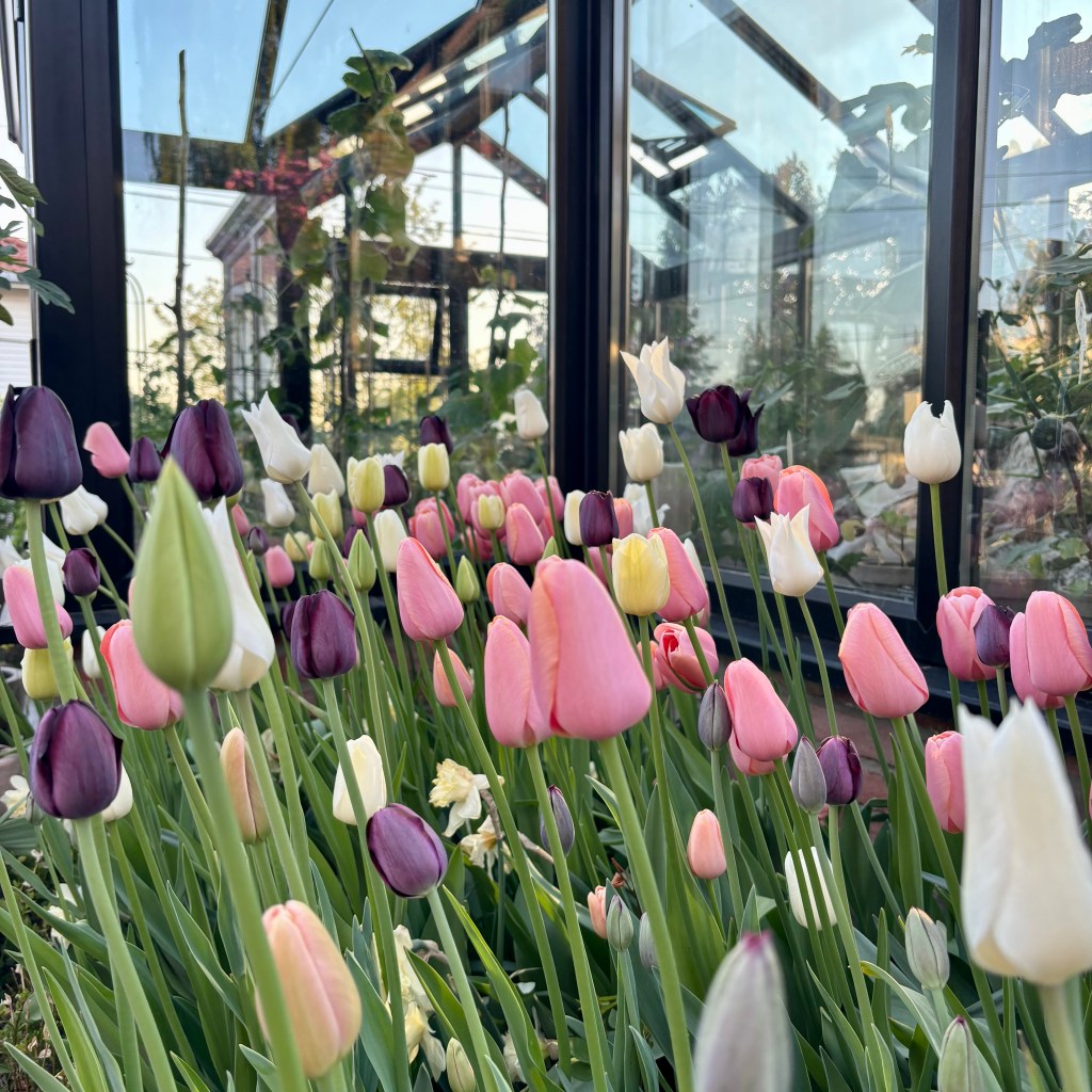 Test også å dyrke tulipaner i drivhus, der gir de tidligere blomstring. Jeg har testet å dyrke høstløk i drivhus nå 3 år på rad med fantastiske resultater. Løkene har jeg satt tett for å få størst effekt. Jeg gir aldri løkene næring om høsten. Når de begynte å stikke frem, vattet jeg dem en hel del. Jeg fikk også ufattelig høye stilker.